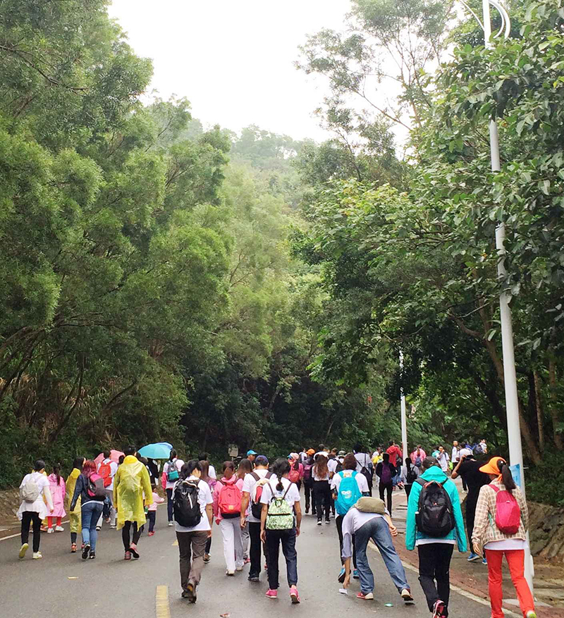 隨著深圳市城市管理局(深圳市林業局)王國賓局長的鳴槍聲響,分為挑戰組、健步組、家庭組、攀巖組四個組別的近800名運動員向著終點進發。雖然氣溫驟降,細雨綿綿,但是大家的志氣高昂,熱情高漲。