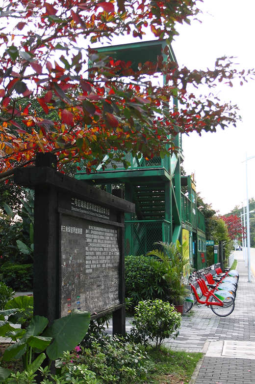 該段保留了原特區“二線關”的石板路、鐵絲網及邊境軍事設施。昔日的“二線鐵絲網”,今日則成為綠色蔓延、花草絢爛的自然野趣之地。行走在綠道上,不僅可以觀賞廢棄集裝箱建成的服務點和興趣點,廢棄枕木做的綠道標識牌,還可以觀賞摩天樓宇和城市天際線,是廣大市民冬日休閑的好去處。