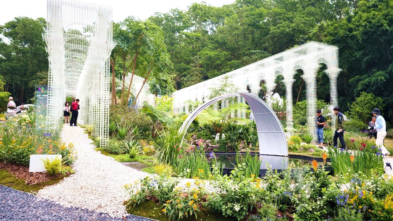 本次橫琴園以“筑夢(mèng)伊甸園”為題。從人類生存開始,「伊甸園」之夢(mèng)就一直存續(xù)不斷。想象中的伊甸園綠草鮮木、靜謐河流,萬物相生相融,永遠(yuǎn)呈現(xiàn)出一種輕柔朦朧的美感。花園以超現(xiàn)實(shí)的造園手法,筑造一場(chǎng)“回歸伊甸園的綠色夢(mèng)”,向人們展示亞當(dāng)與夏娃離開數(shù)千年后的「伊甸園」模樣。