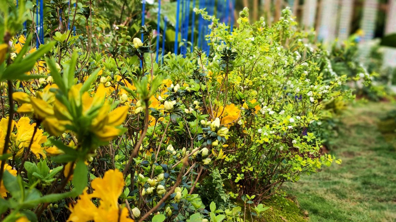 花園共種植了大約130多種植物,我們選用了大量橫琴本地鄉(xiāng)土種,如幌傘楓、石斑木、桫欏、鳳尾蕨、豬籠草、頭花廖等,同時(shí)也選擇了杜鵑、月季、大花飛燕草、百子蓮等植物的新品種進(jìn)行搭配,打造出一種既自然又夢(mèng)幻的氛圍。它們充盈著自然原始的張力,迸發(fā)出一種靈動(dòng)的美感。